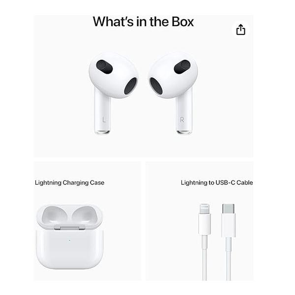 - PERSONALIZED SPATIAL AUDIO — With sound that suits your unique ear shape along with dynamic head tracking, AirPods (3rd generation) deliver an immersive listening experience that places sound all around you. You can also listen to select songs, shows, and movies in Dolby Atmos.